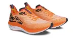 A entressola com o novo composto Float Plus entrega uma sensação mais macia em relação ao modelo anterior, enquanto a placa Speedtech Carbon adiciona uma estrutura extra para melhorar a transição e o impulso durante a corrida.